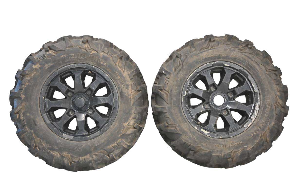 Rims are in good condition. Have light wear and scuff marks. Tires are in good shape with no plugs or holes. Comes as pictured. Was removed from a running 2022 Can-Am Defender XT HD10 with 4743.4 miles and 753.3 hours.