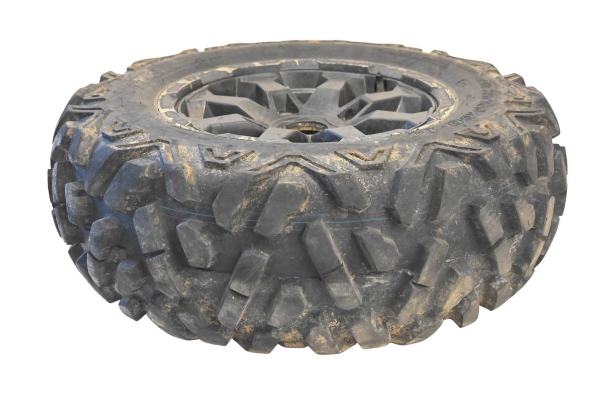 Rim is in good condition. Has light wear and scuff marks. Tire is in good shape with no plugs or holes. Comes as pictured. Was removed from a running 2022 Can-Am Defender XT HD10 with 4743.4 miles and 753.3 hours.