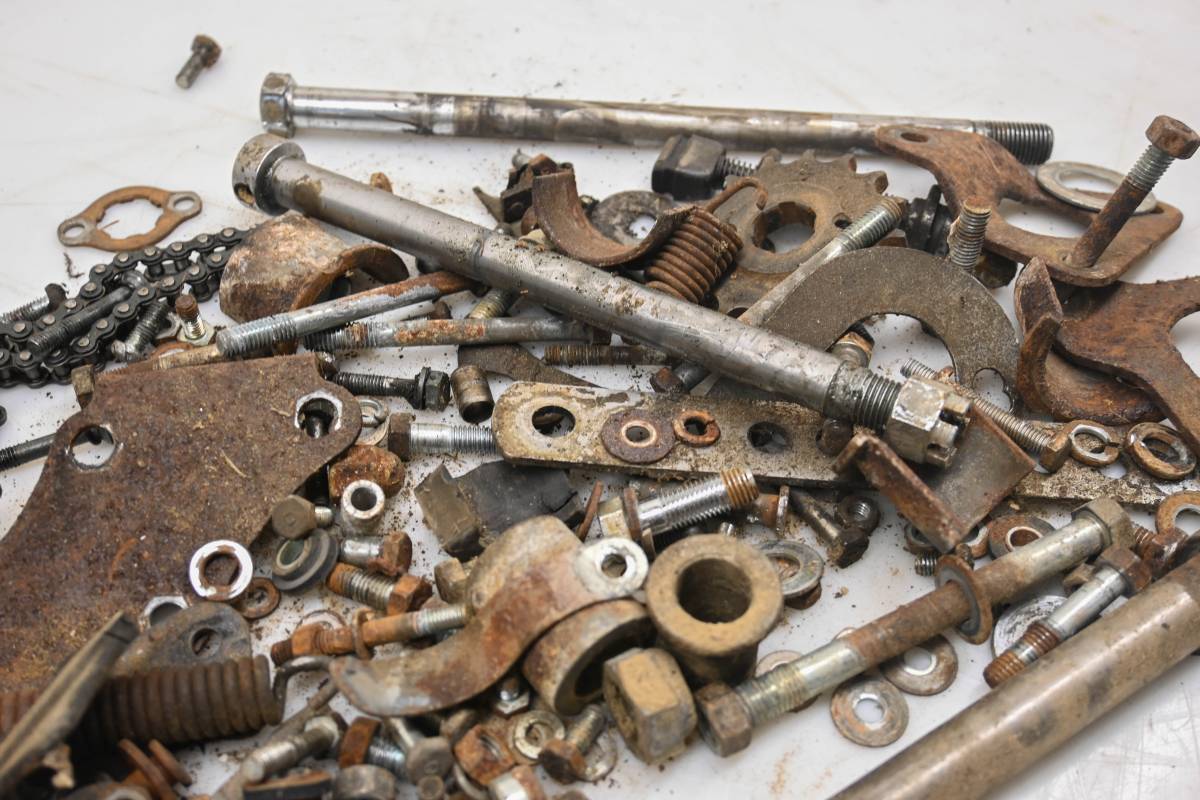 Hardware set includes all of the items pictured. Comes as pictured. Was removed from a 1972 Honda CB175 with 18417.9 miles.