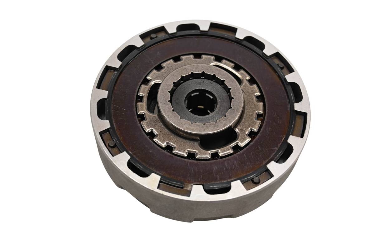 Clutch is in good working condition. Has light wear from plates. Ears are in good shape. Gear and teeth have light wear. Comes as pictured. Was removed from a 2002 Can-Am DS90 4-Stroke.