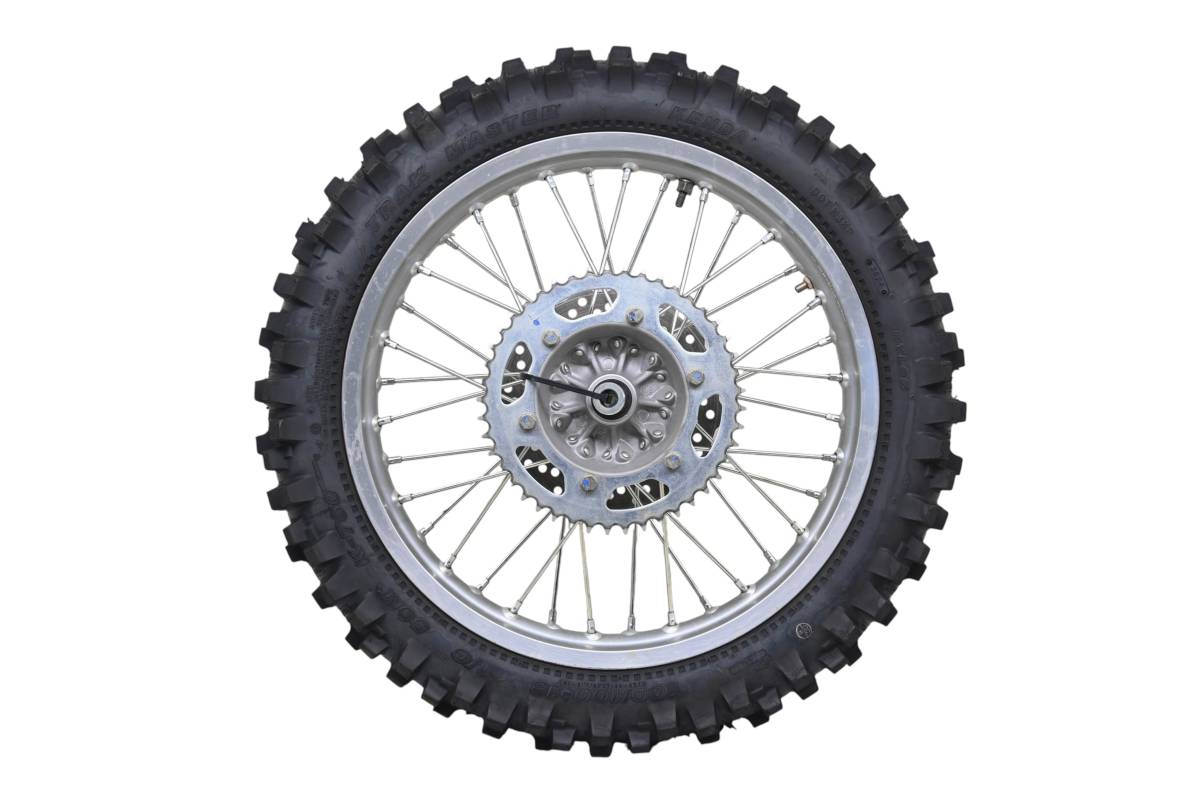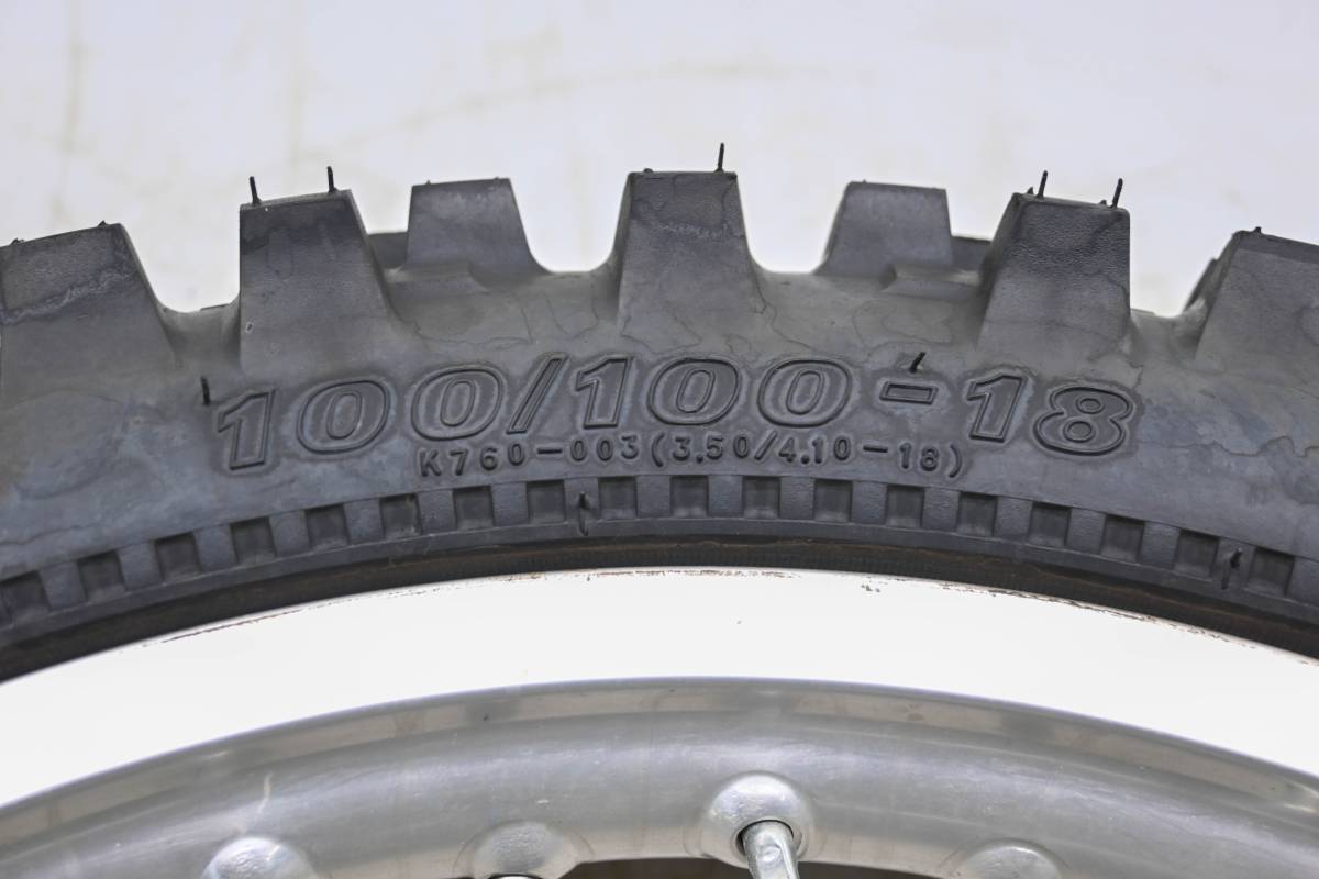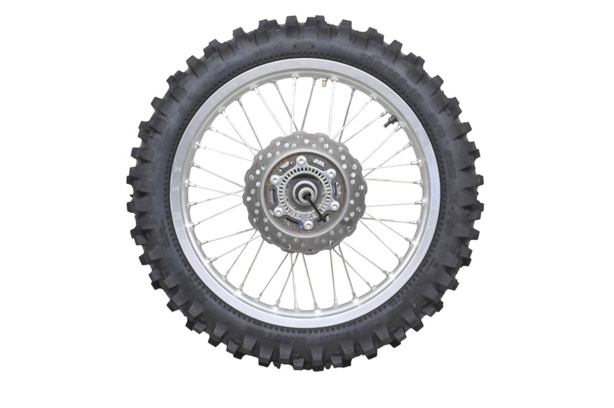 Rim is in good condition. Has light wear and scuff marks. Tire is in good shape with no plugs or holes. Comes as pictured. Was removed from a running 2023 Kawasaki KLX230S with 323 miles.