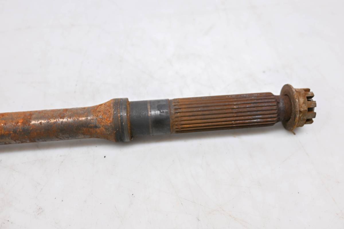 Axle is straight and in good condition. Finish has light wear. Splines and threads are straight. Comes as pictured. Was removed from a 2005 Honda Foreman 500 2x4 TRX500TM.
