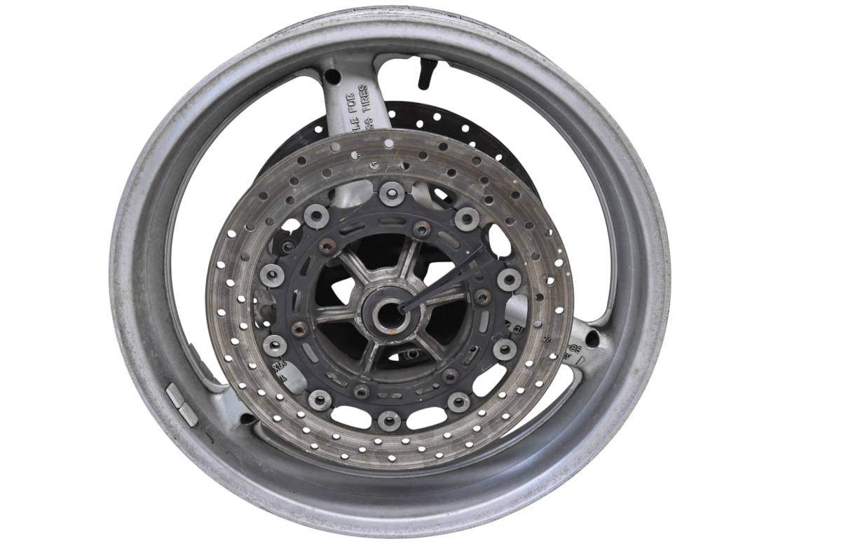 Rim is straight and in good condition. Outside edge has some dings and wear from use. Comes as pictured. Was removed from a 1999 Yamaha R1 YZF1000 with 42862 miles.