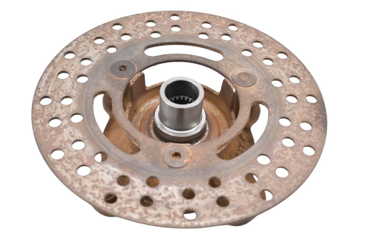 Hub and rotor are in good condition. Rotor is straight and has light wear from use. Comes as pictured. Was removed from a running 1999 Kawasaki Prairie 300 2x4 KVF300.