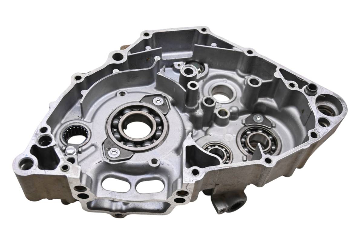 Left crankcase is in good condition with no cracks or repairs. Finish has light wear. Bearings are good. Comes as pictured. Was removed from a 2009 Yamaha YZ250F.