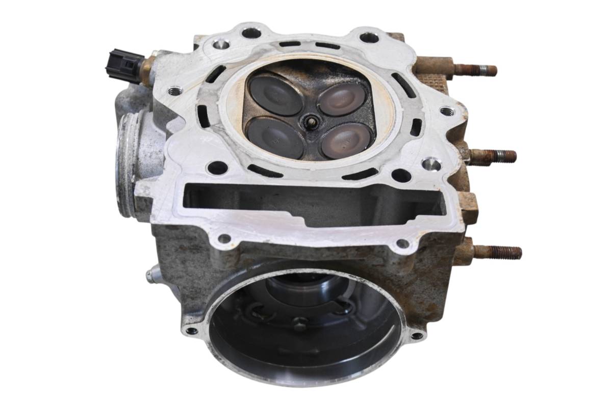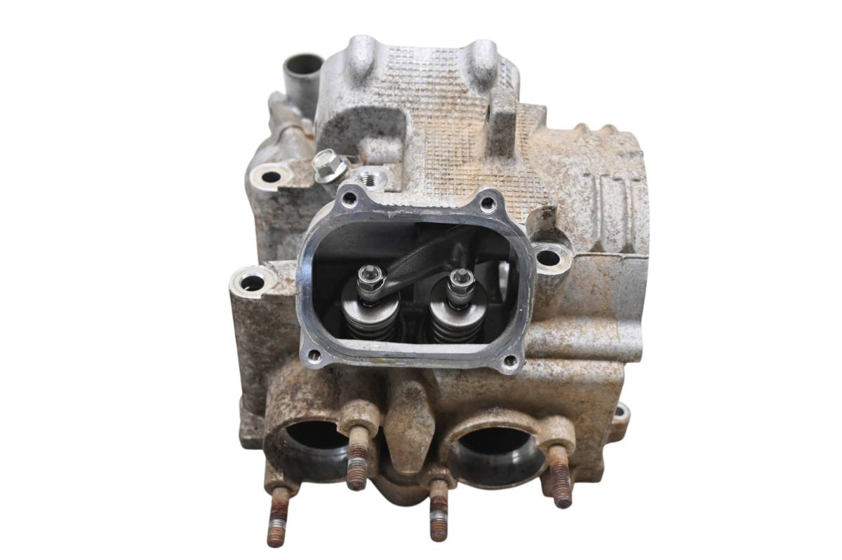 Cylinder head is in good condition. Valves and springs are included. Cam journals are smooth. Combustion chamber has some carbon build up. Comes as pictured. Was removed from a 2014 Yamaha Grizzly 550 4x4 YFM550F with 835 miles and 158.3 hours.