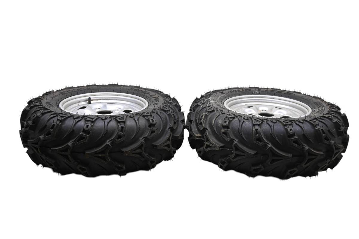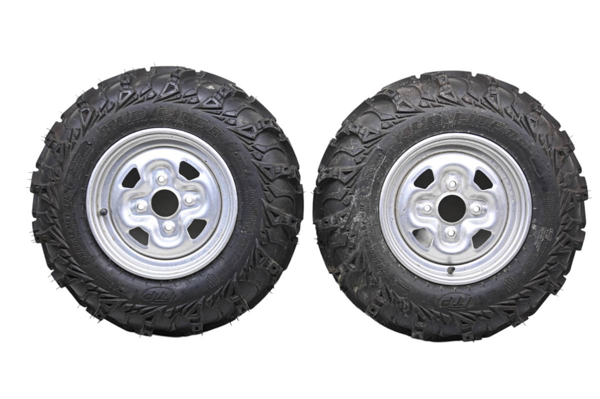 Rims are in good condition. Have light wear and scuff marks. Tires are in good shape with no plugs or holes. Comes as pictured. Was removed from a 2004 Yamaha Grizzly 660 4x4 YFM660F with 1219 miles.