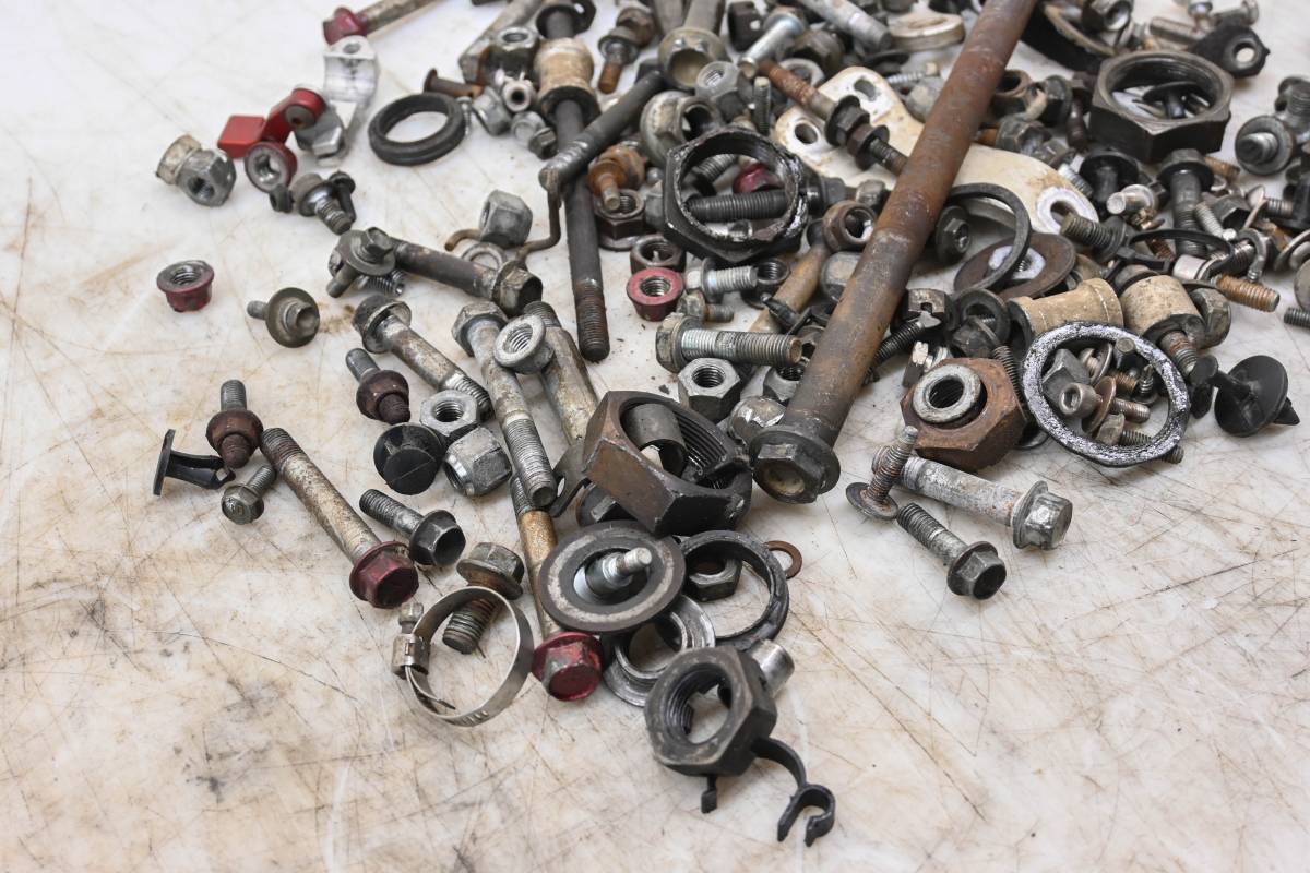 Hardware set includes all of the items pictured. Comes as pictured. Was removed from a 2003 Suzuki LTZ400 KFX400.