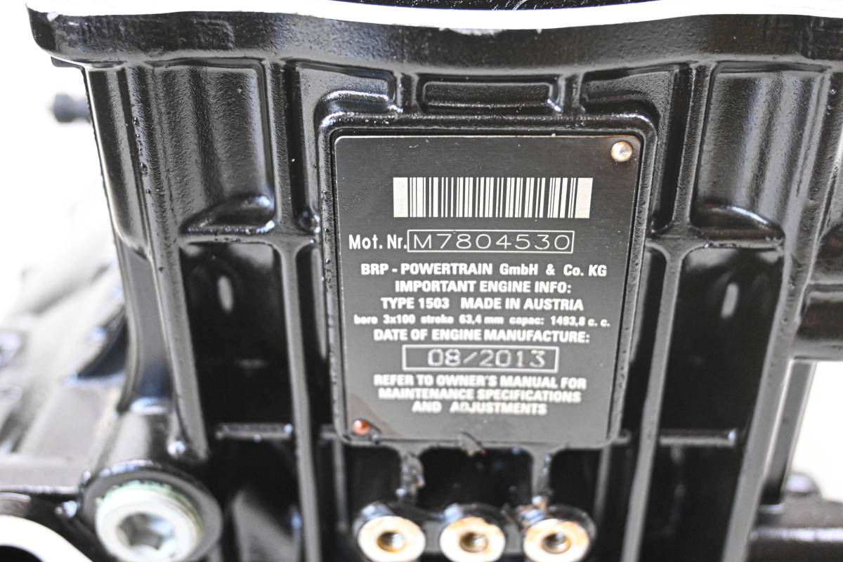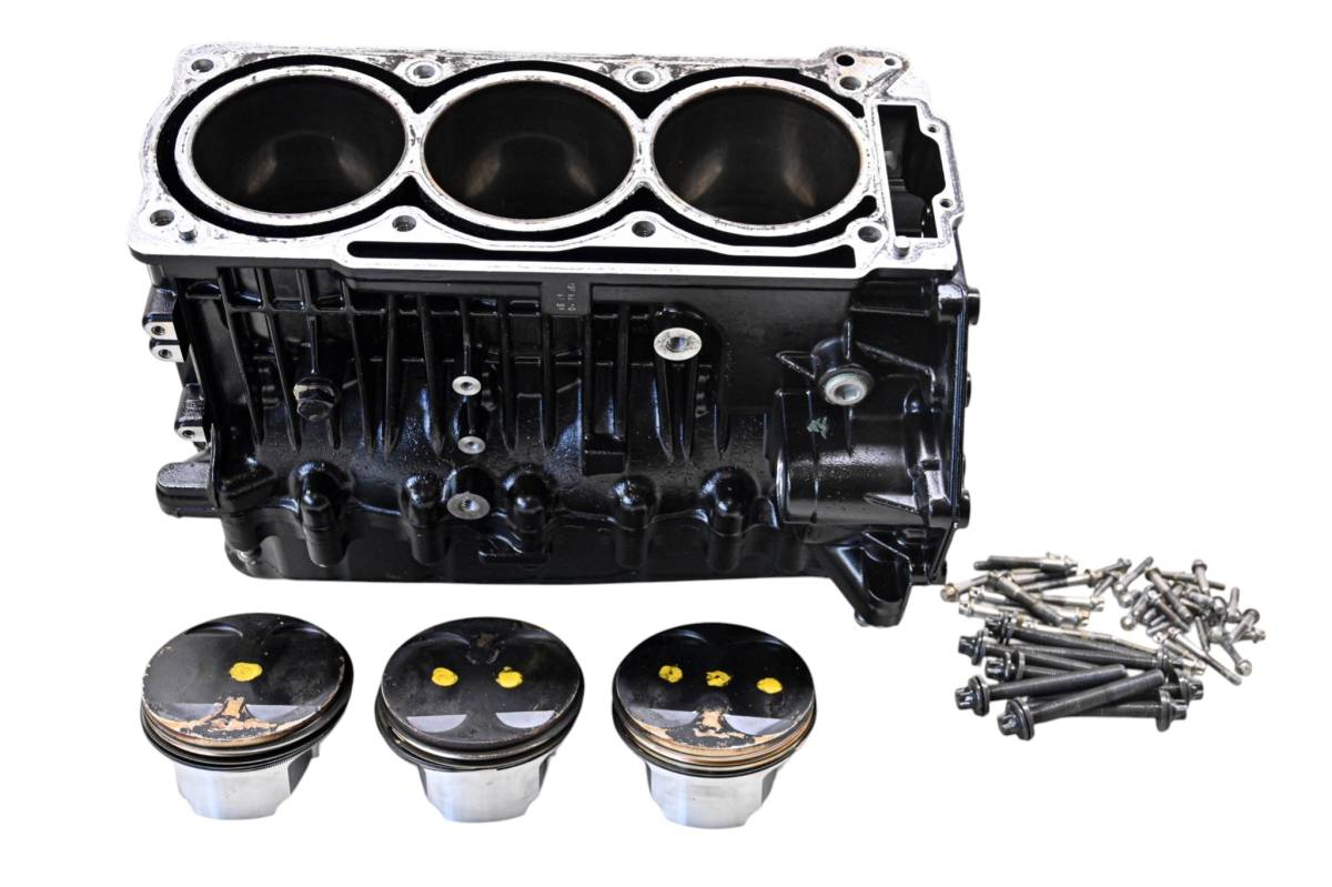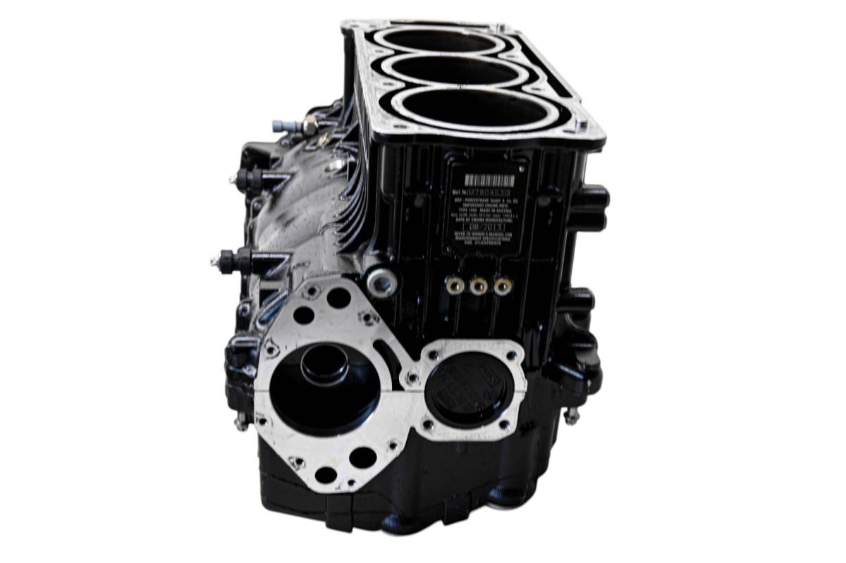 Crankcase is in good condition with no cracks or repairs. Finish has light wear. Bearings are good. Bores have light wear and measure 100mm. Comes as pictured. Was removed from a running 2014 Sea-Doo Wake 155 and 232 hours.