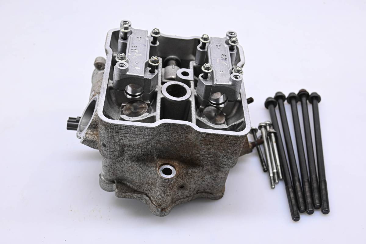 Cylinder head is in good condition. Valves and springs are included. Cam journals are smooth. Combustion chamber has some carbon build up. Comes as pictured. Was removed from a 2006 Suzuki King Quad 700 4x4 LTA700X.