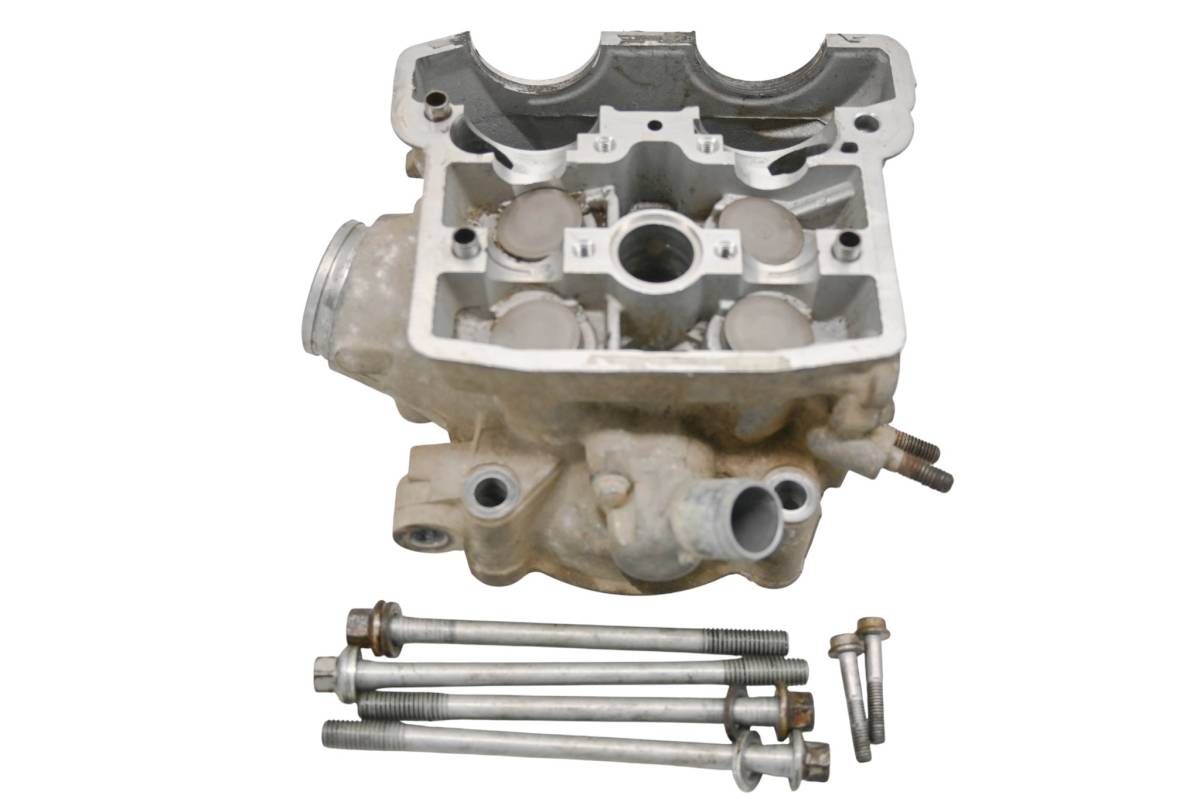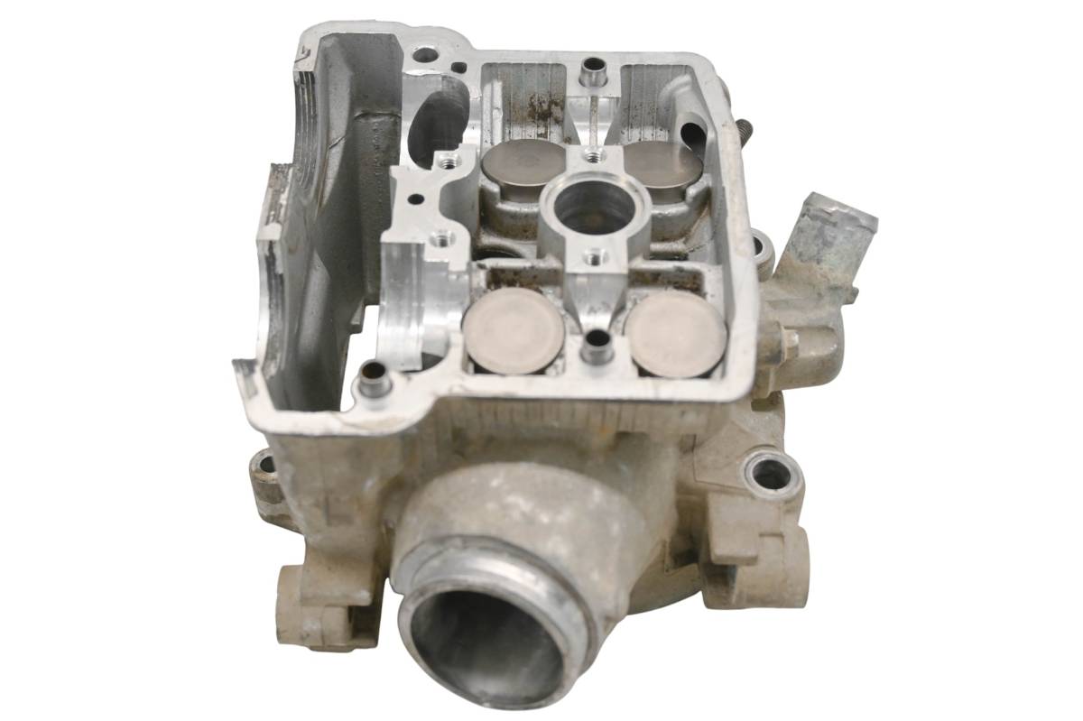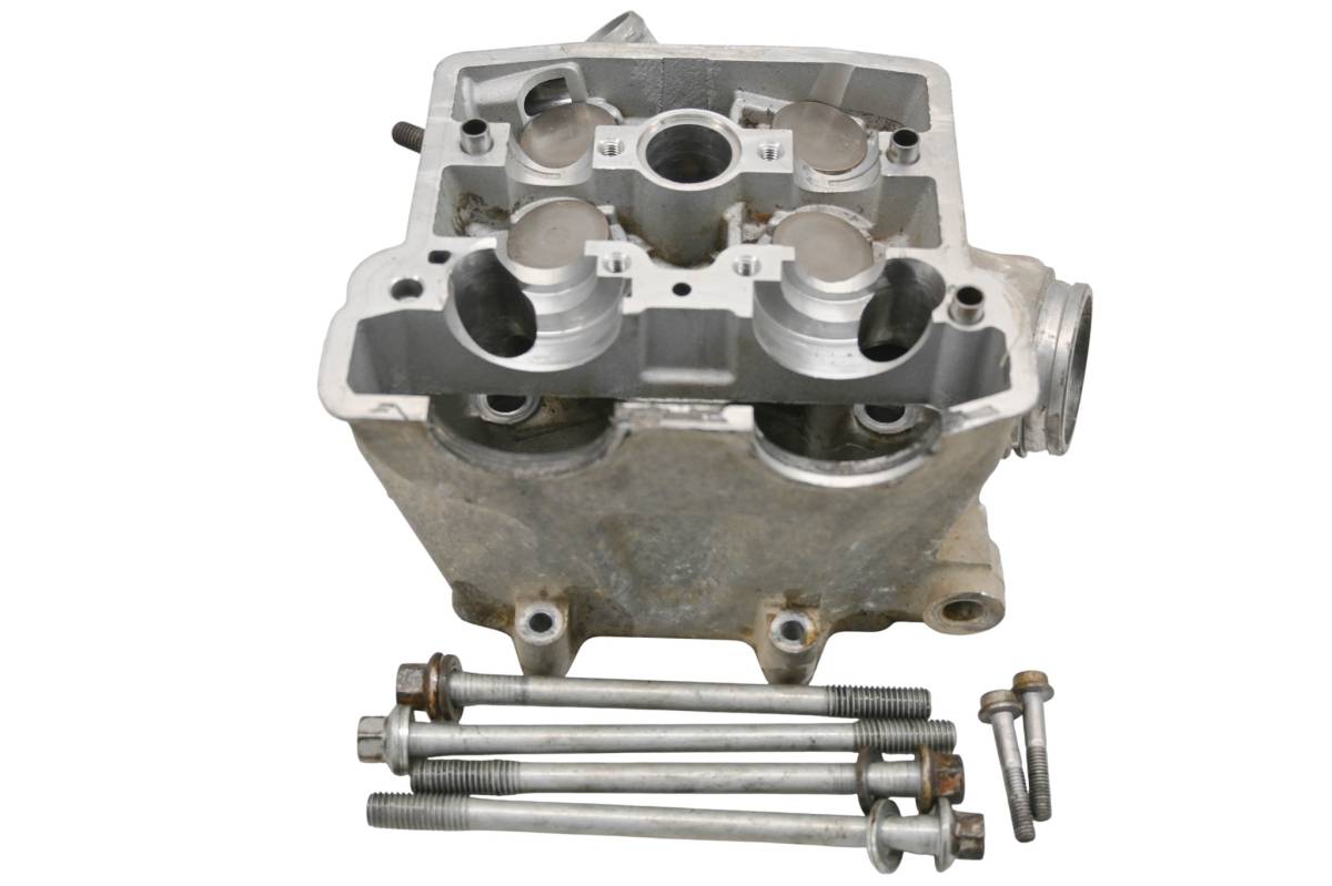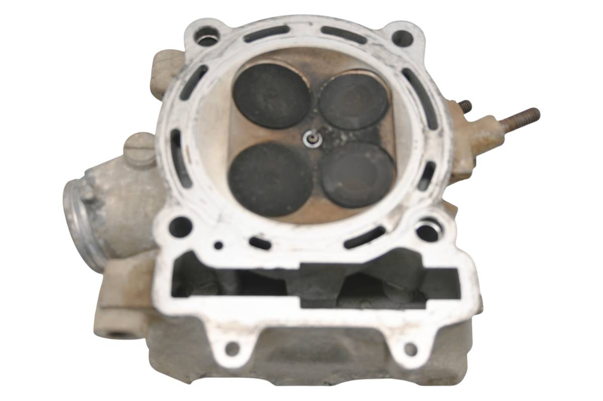 Cylinder head is in good condition. Valves and springs are included. Cam journals are smooth. Combustion chamber has some carbon build up. Camshaft cover is missing. Comes as pictured. Was removed from a 2008 Kawasaki KFX450R.