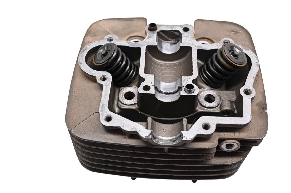 Cylinder head is in good condition. Valves and springs are included. Cam journals are smooth. Combustion chamber has some carbon build up. Rocker arms have some wear. Comes as pictured. Was removed from a 1989 Suzuki LT250S Quadsport 250.