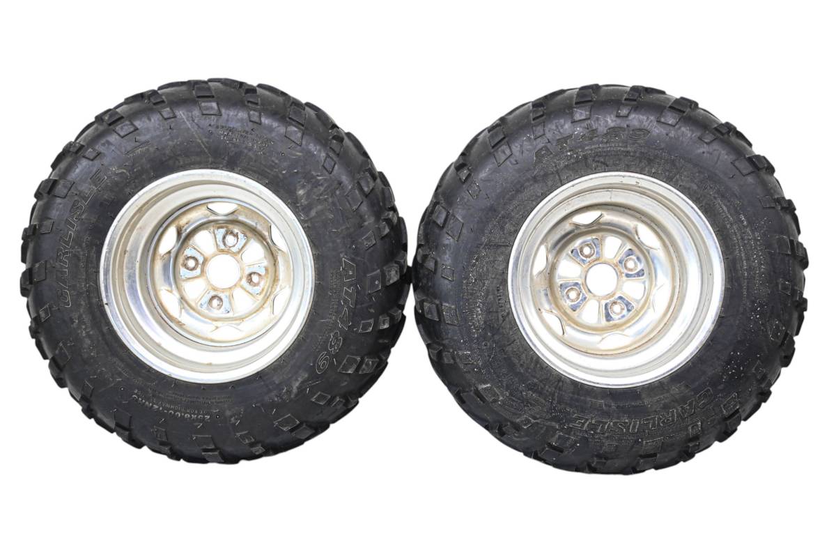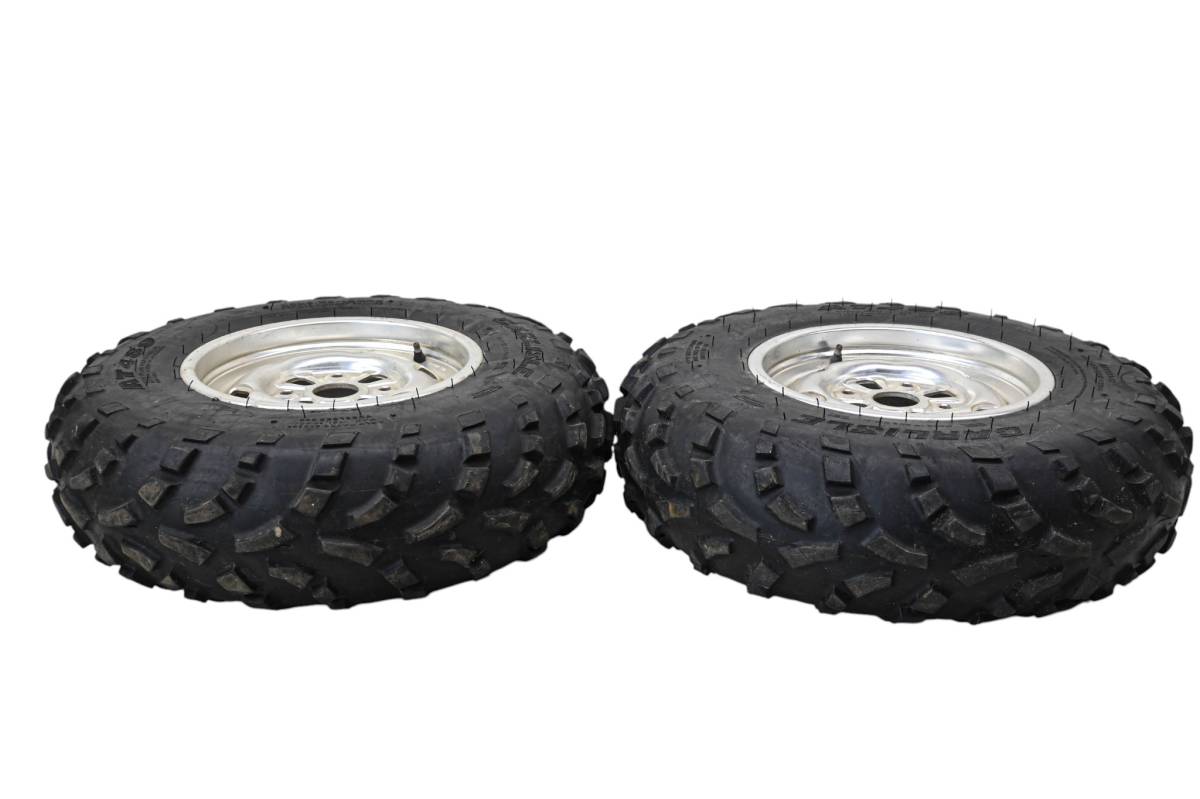 Rims are in good condition. Have light wear and scuff marks. Tires are in good shape with no plugs or holes. Comes as pictured. Was removed from a running 2003 Honda Rincon 650 4x4 with 3162 miles and 543 hours.